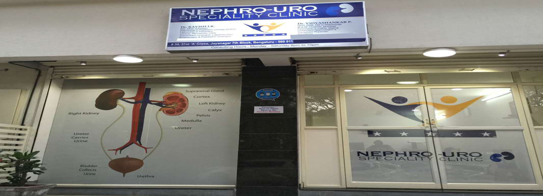 Nephro-Uro Clinic is one of most popularly known nephrology and urology hospitals in Bangalore. Nephro-Uro Clinic is located in Jayanagar 7th Block, Bangalore. We have well experienced doctors in the field of nephrology and urology. Our health services include the effective treatment of renal diseases and urological disorders which includes pediatric urology and pediatric nephrology. We are equipped with the state of the art medical equipments, laboratories and best clinical team.